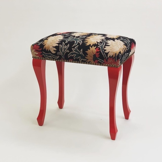 サイズ 約幅 43cm 奥行 28cm 高さ 43cm シートハイ40cm フランス直輸入の最後の生地。猫足の可愛らしいデザインが特徴で、玄関やリビングでおしゃれなアクセントとしてお使いいただけます。日本製で丁寧に作られたこちらのスツールは、長くご愛用いただけます。 どこか懐かしいフランスの生地に包まれたこのスツールは、あなたのお部屋に上品な雰囲気をプラスしてくれます。玄関に置けば、ゲストを温かくお迎えできること間違いなし。是非、こだわりのインテリアとして、ご自宅にお迎えください。 ※立ち上がらないないようご注意ください。屋外でのご使用には向いておりません。 オーダー スツール プティスツール 玄関スツール isuhouse イスハウス。お部屋を華やかに彩る、フランス直輸入生地のスツールです。さりげないおしゃれさと機能性を兼ね備えたデザインで、玄関やリビング、お部屋のどこに置いても馴染みます。自分好みのインテリアコーディネートを楽しめます。心地よい座り心地と高品質な生地で、長く愛用できる一品です。是非、素敵な空間演出と快適なくつろぎをご体験ください。 色々なスツールを作り、そこでお客様の生の声を聞き、何度も試行錯誤を繰り返した上にようやく落ち着いたデザインとサイズ。 日本の玄関に特化したサイズ感。 持ち運びしやすい形状と重さ。 より綺麗に見えるように考えられた脚のデザイン。 フランス直輸入の希少かつ、高級な美しい生地。 積層して作ったクッション材は硬めで立ち上がりやすく、座り心地も良い。 張り替えなどのメンテナンスが可能。 純日本製の長く使えることを常に考えて作られたスツールです。 このスツールの製作には日本の職人が3職種携わることで完成しています。 1 木工職人。木工といっても様々な職人います。たとえば、指物、箱物、脚物、彫刻、桐箪笥、家具等。椅子を作ることが出来るのは脚物職人。職業訓練校などで講師をしている職人さんに依頼。 2 塗装職人。塗装の職人も様々です。外壁塗装、車、箔、漆、和家具、洋家具等。椅子の塗装が出来るのは洋家塗装職人になります。厚生労働省より現代の名工を受章した職人に依頼。 3 椅子張り職人。椅子張り職人の業務は職人のなかでは多岐にわたります。バネなどの下ごしらえ、ウレタン等クッション材、立体裁断の型取り、生地裁断、ミシン縫製、生地を張る職人、鋲やトリムなどの仕上げ。各職人が細分化されて行う場合と、一人の職人がすべての作業を行う職人がいます。平成28年度に厚生労働省より現代の名工を受章。デザインと生地の選定をしています。 フランスの直輸入の生地を使用 布地以外はすべて日本製、マイスターによる製作。