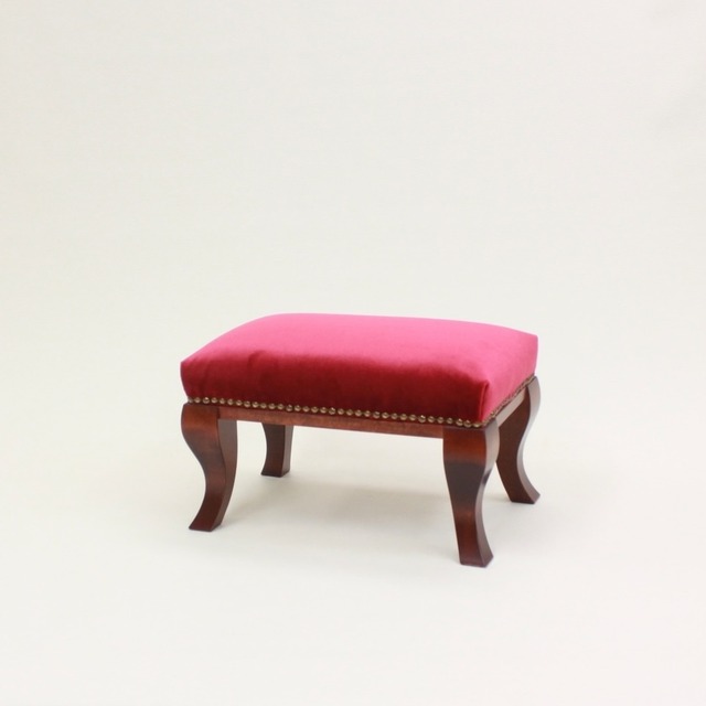 足置きスツール 外はね猫足 フランスモヘア生地ピンク