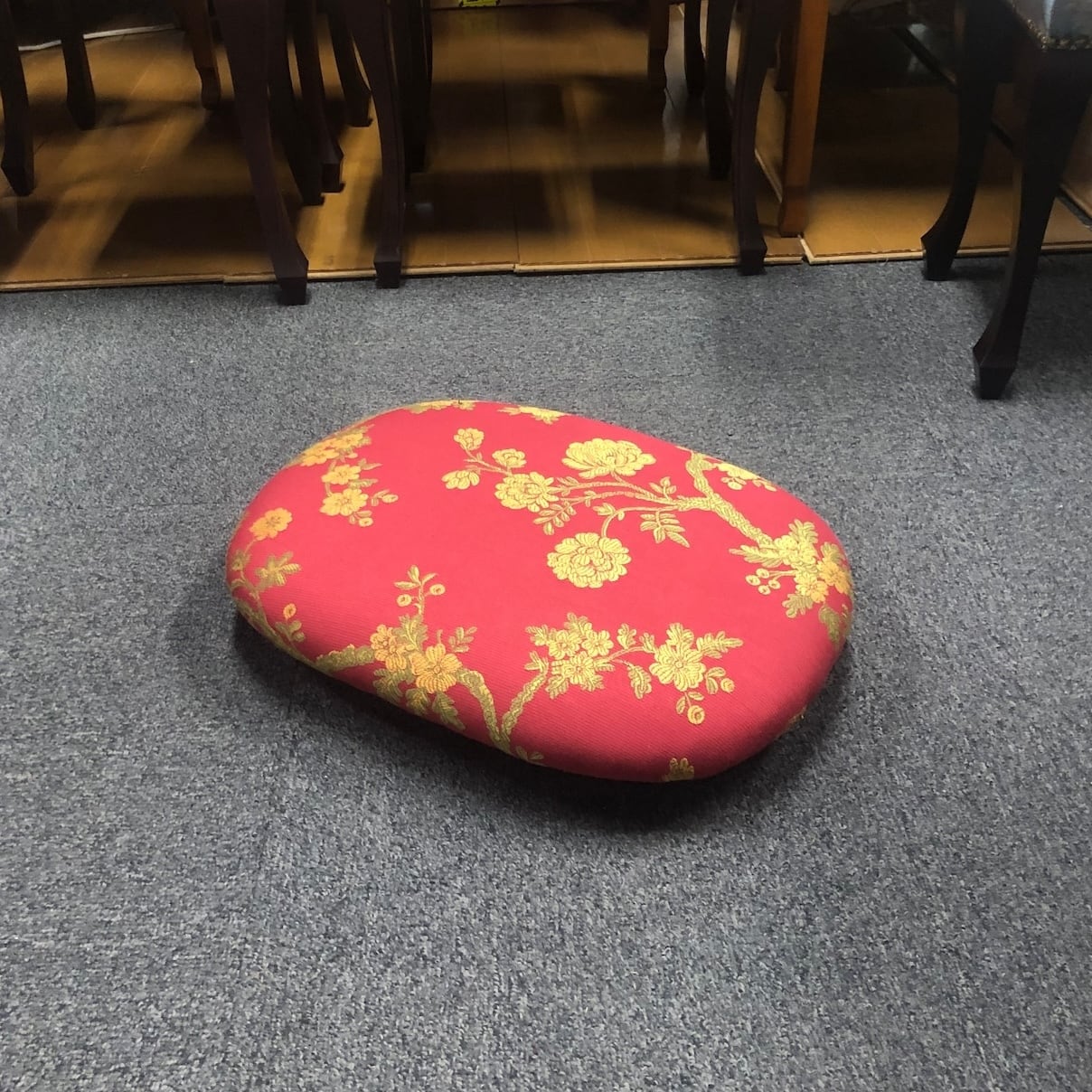 楕円スツール 腰掛け 足置き 枕 フランス布地 赤花柄 イスハウス