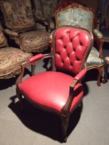 本革赤ボタン締め アンティークアームチェア ルイ15世 イスハウス上柳