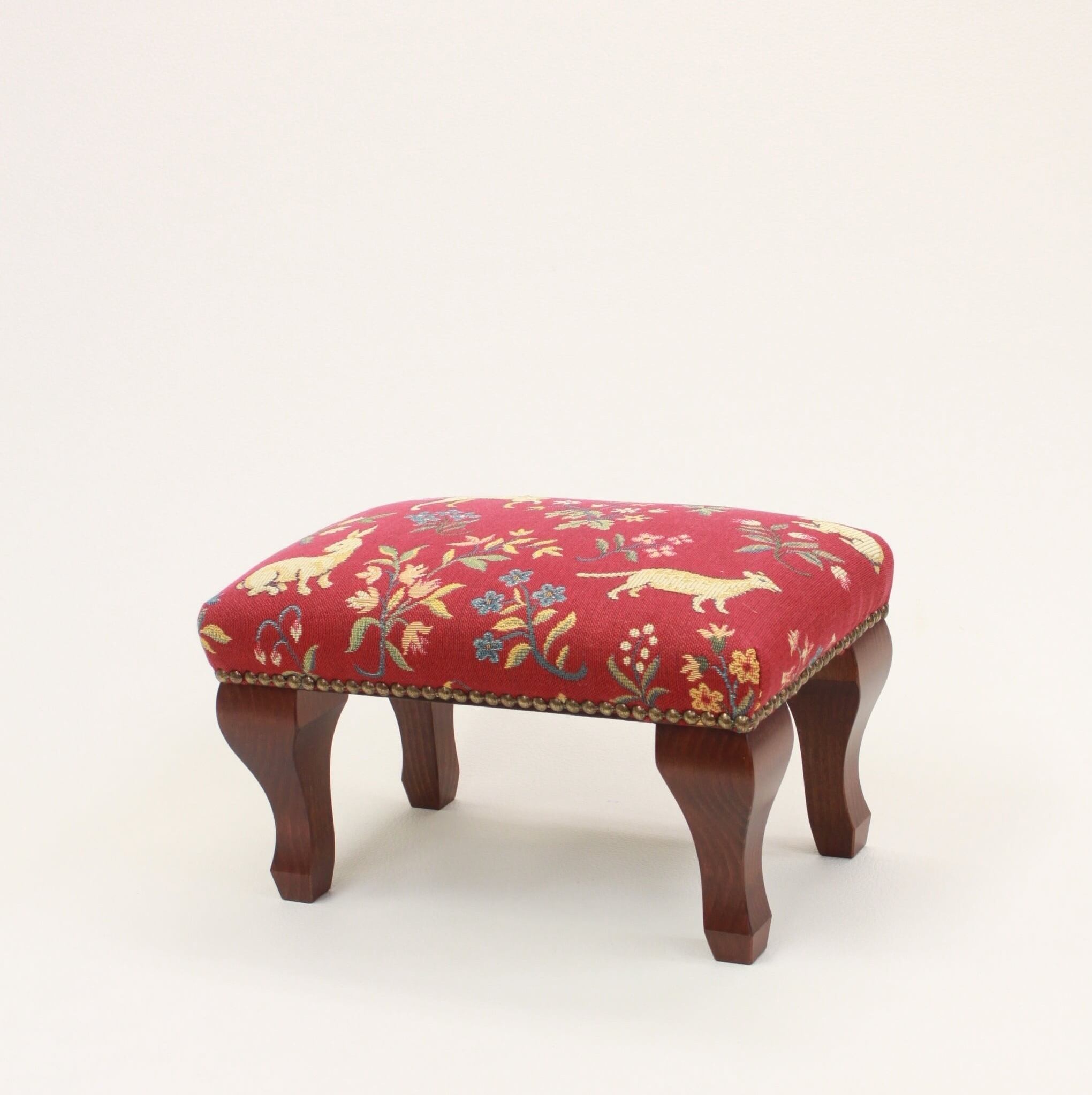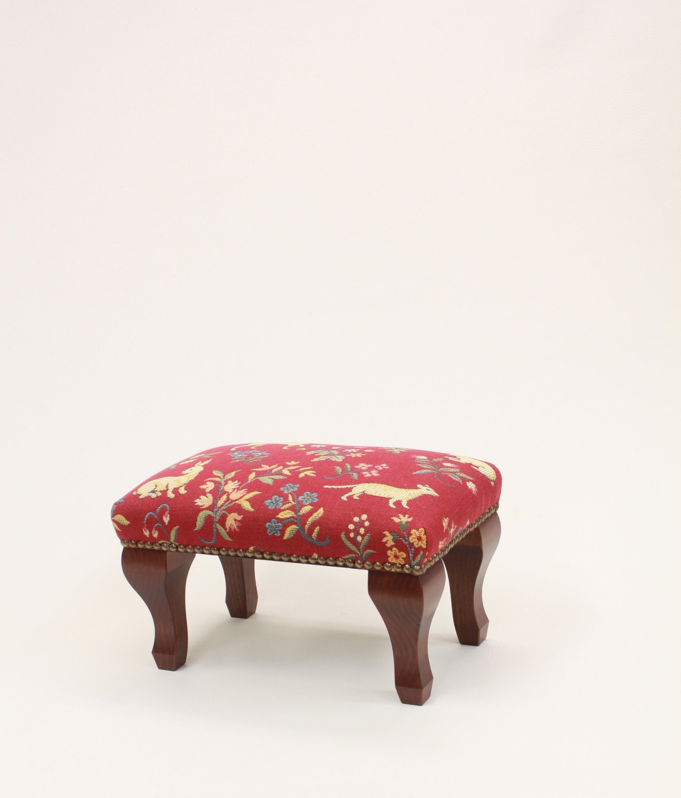 長方形足置きフットスツール フランス直輸入生地 動物赤中世 isuhouse イスハウス