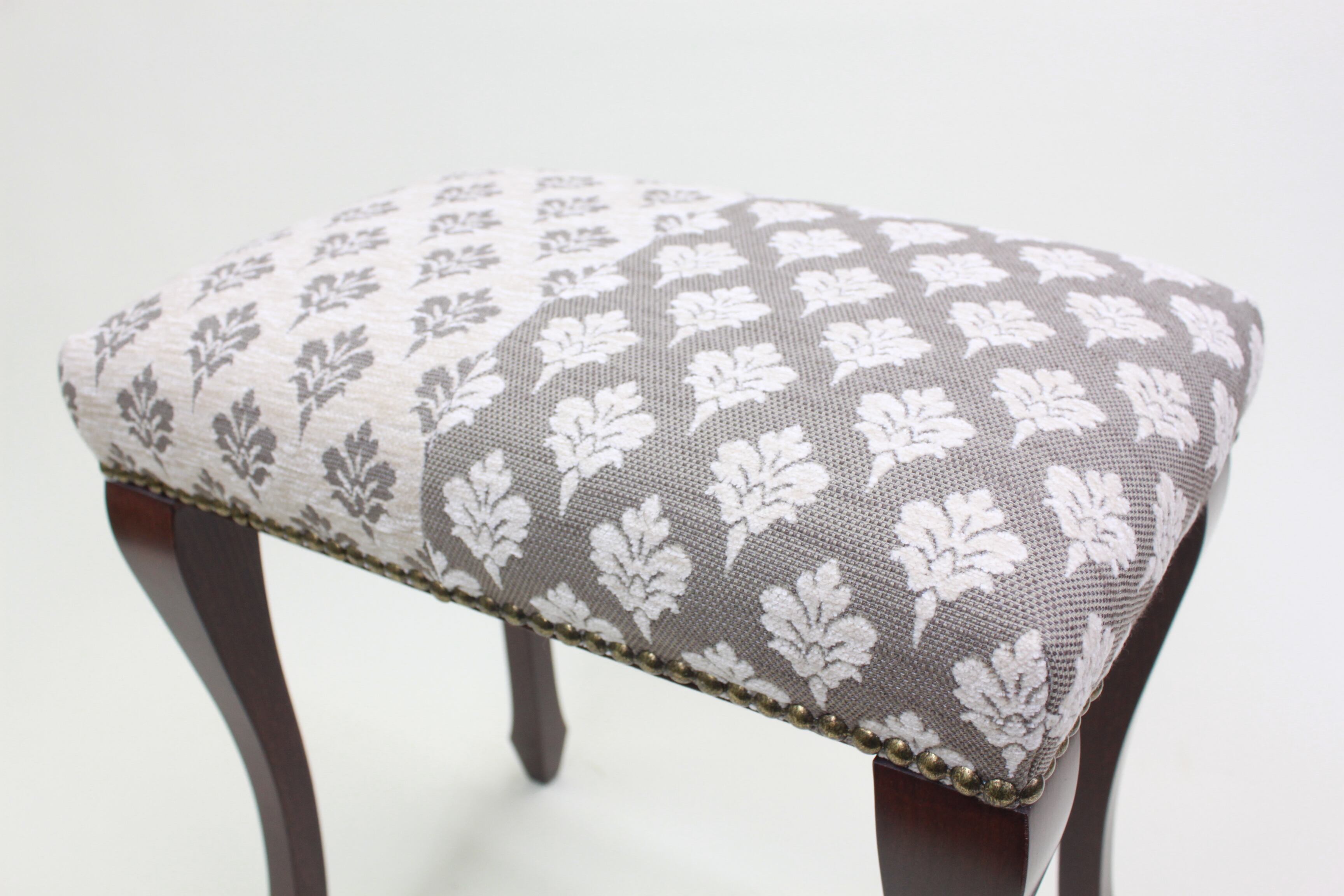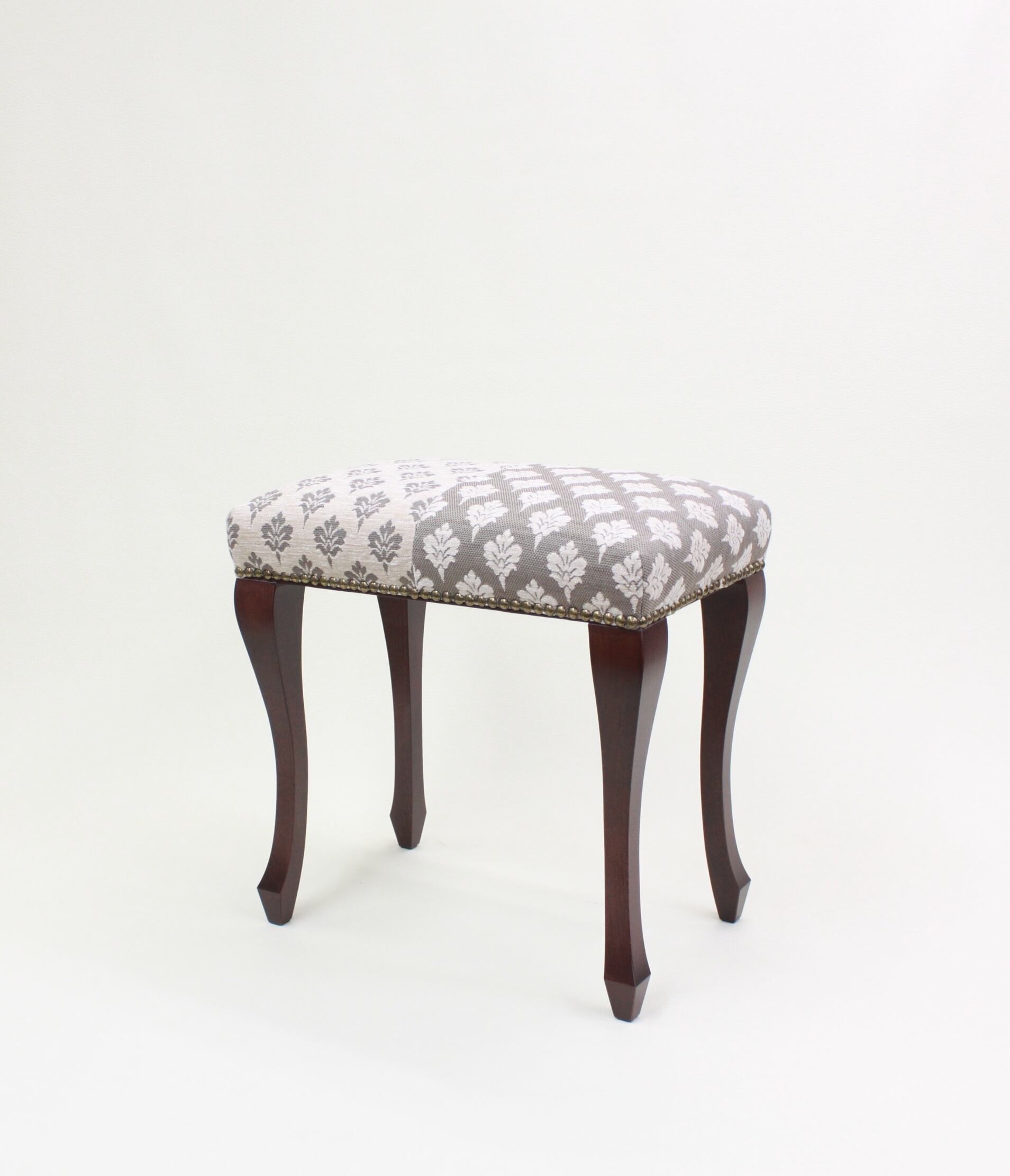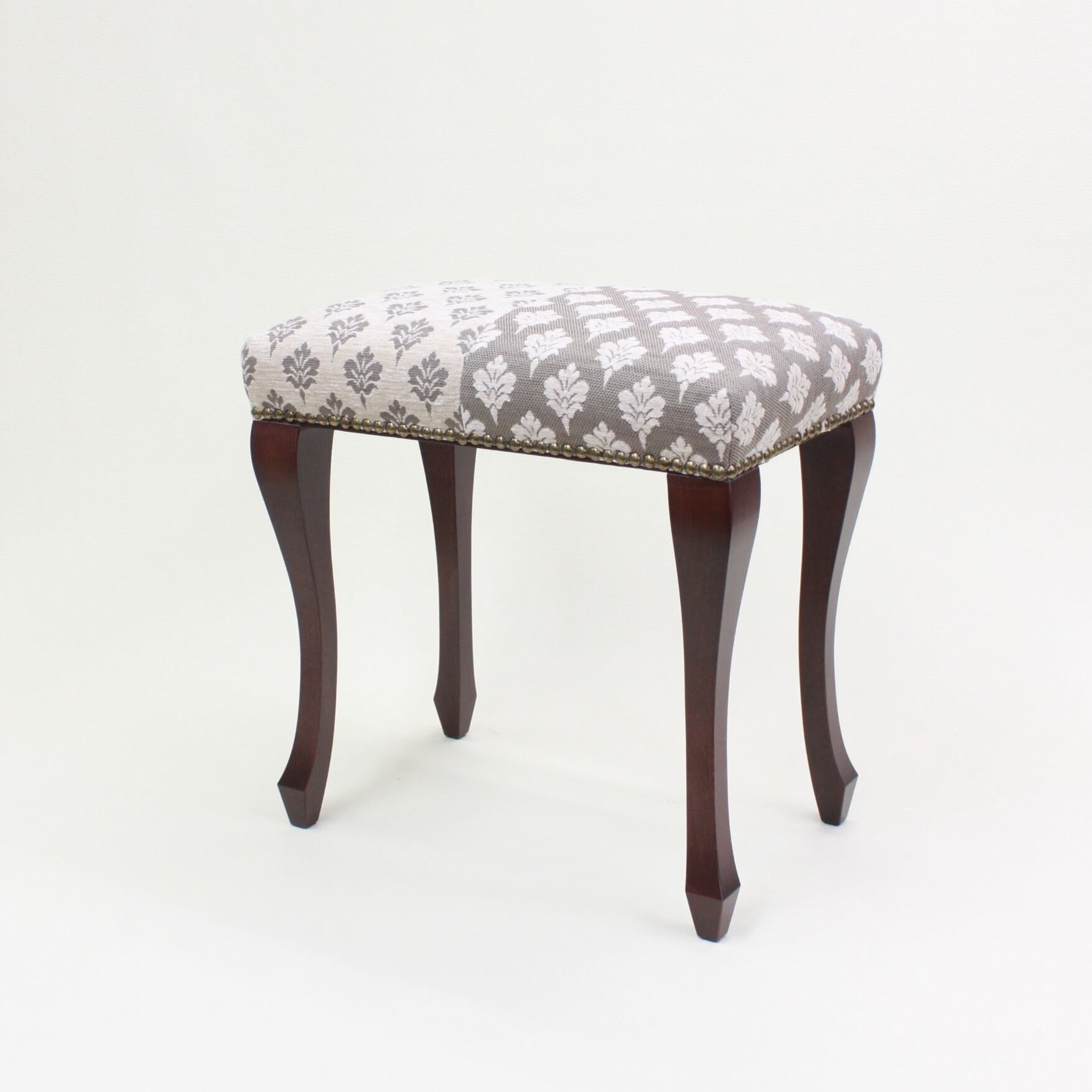 フランス直輸入の新マカロンシルバーツートン生地。猫足の可愛らしいデザインが特徴で、玄関やリビングでおしゃれなアクセントとしてお使いいただけます。日本製で丁寧に作られたこちらのスツールは、長くご愛用いただけます。