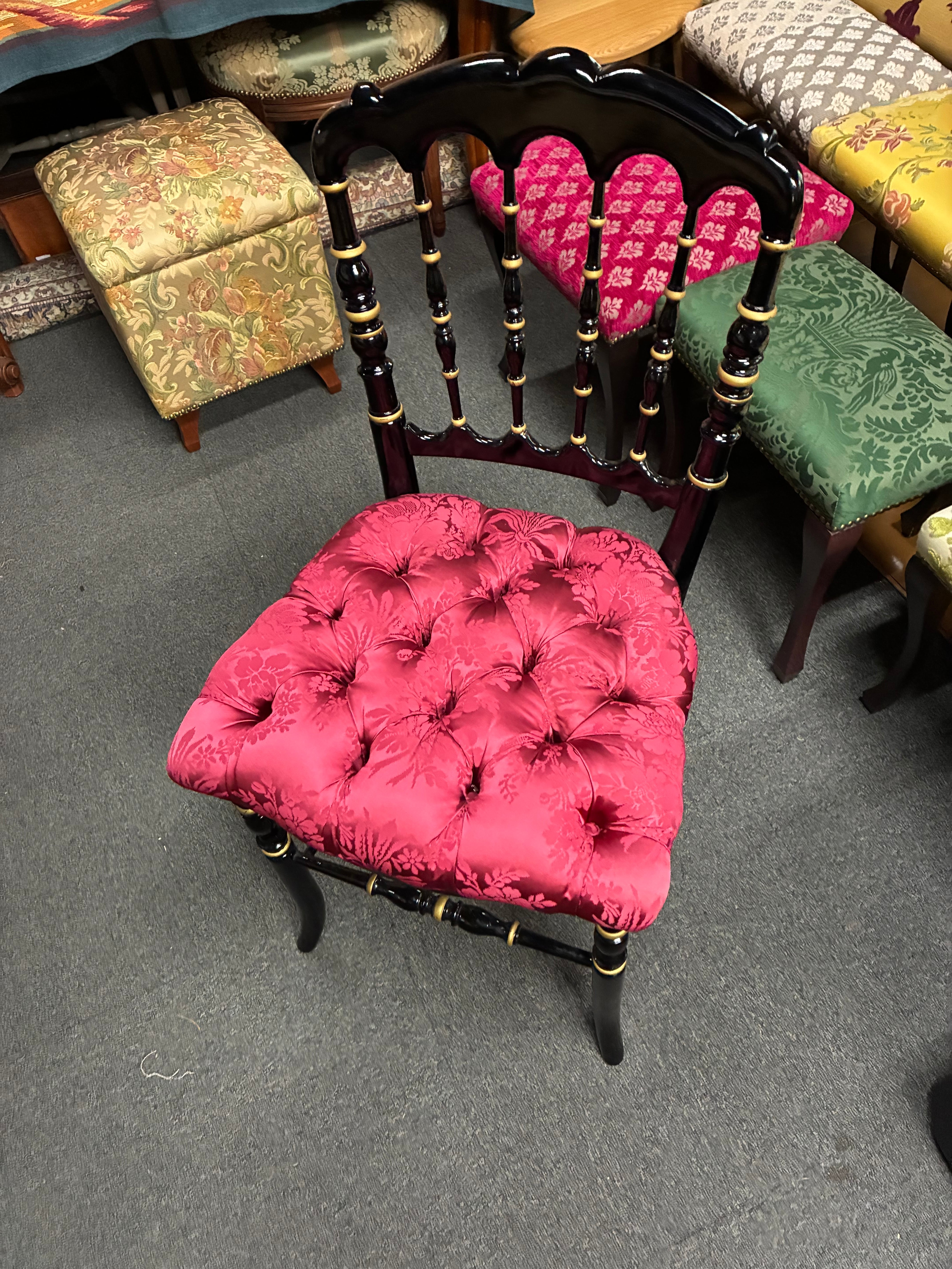 ボタン締めわして、鋲仕上げで手作りした椅子です。