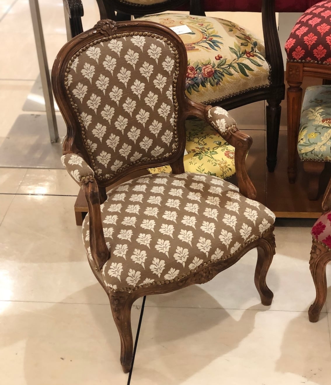 フランスのフレームに、フランスの布地を使ってイスハウスが仕上げました。