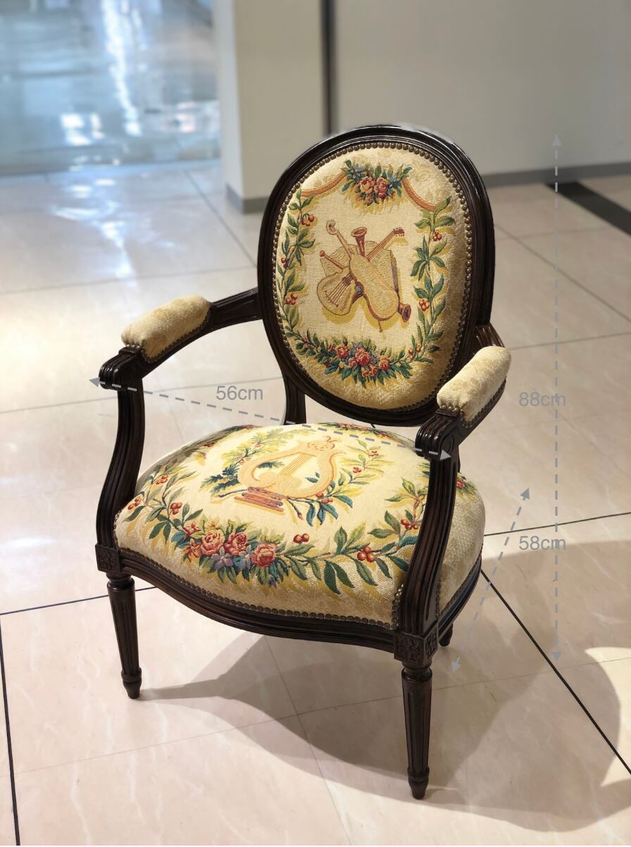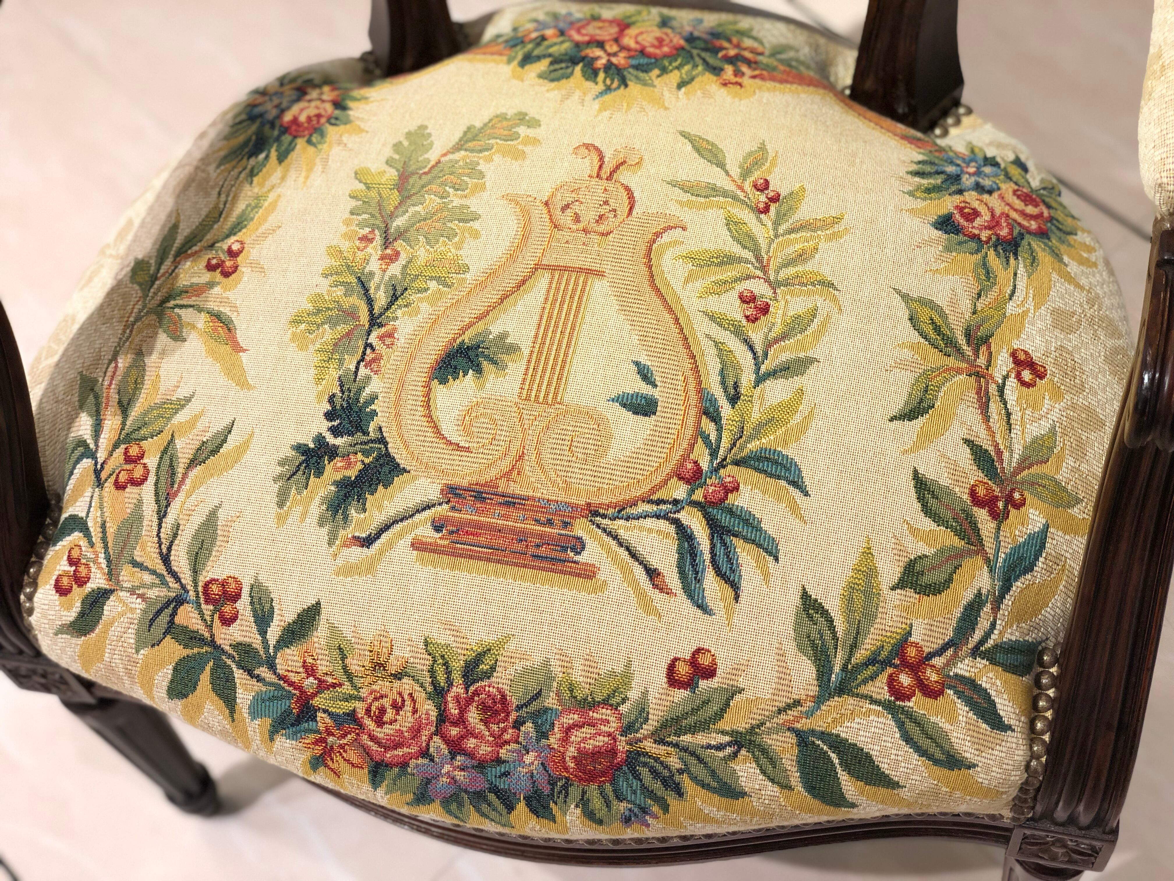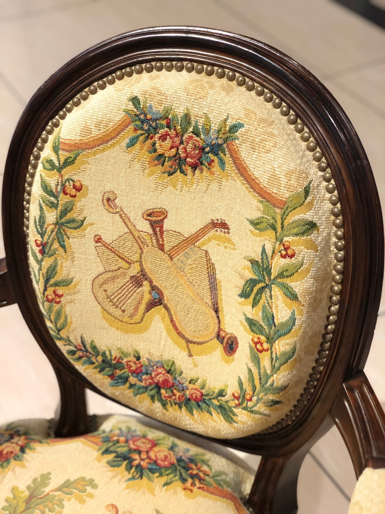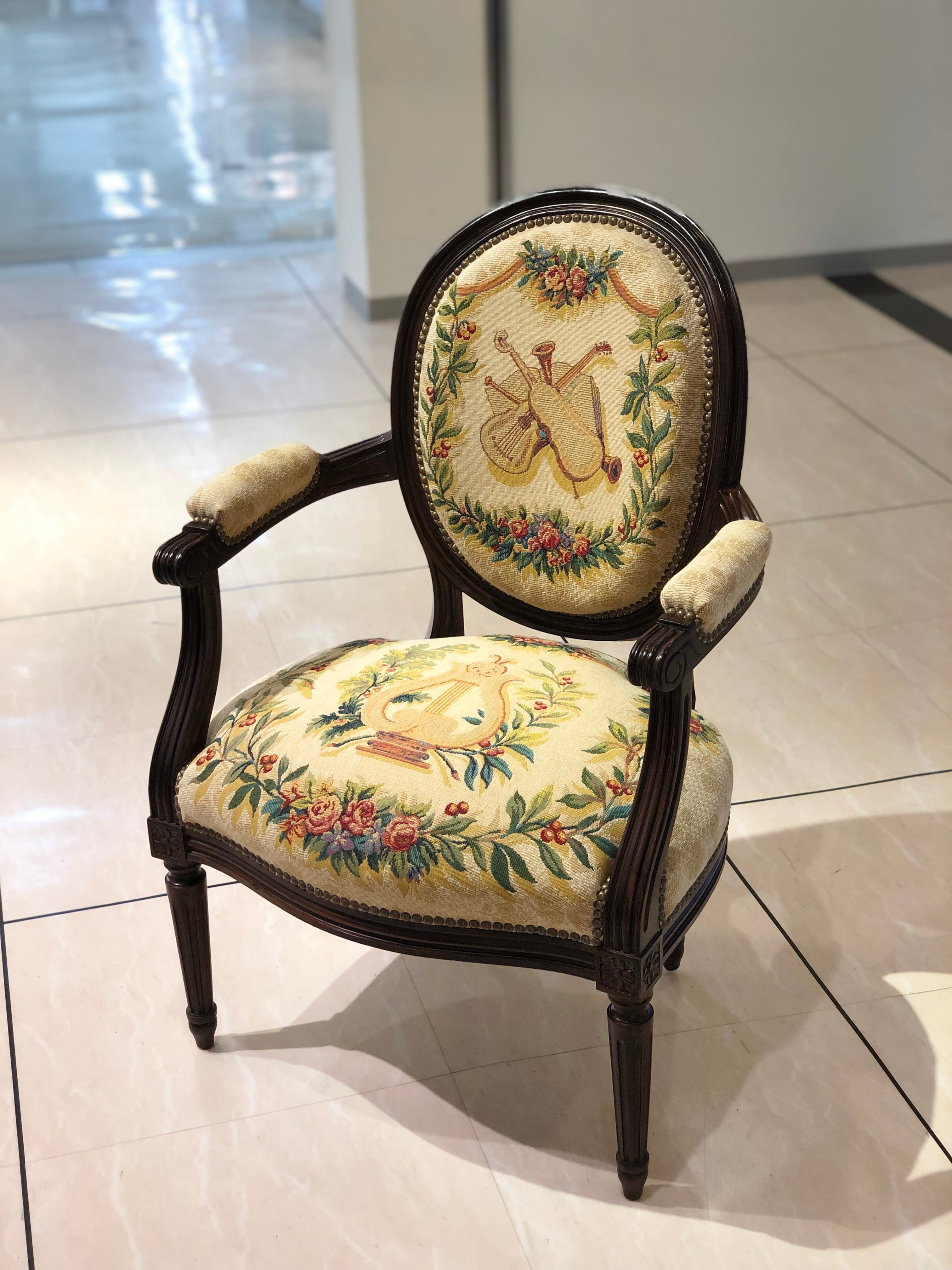 ルイ16世スタイルアームチェア サロン 楽器柄