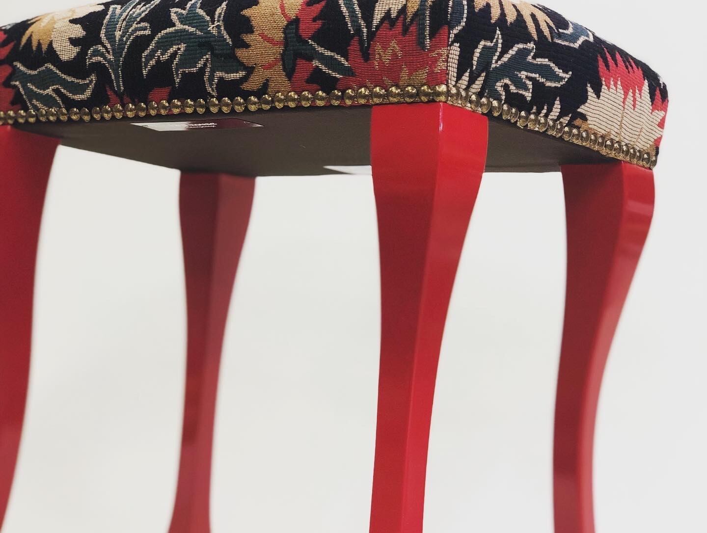 玄関を彩る漆調の朱色(赤)スツール。フランスから取り寄せた生地を使用し、丁寧に仕上げました。使い込むほどに味わい深くなる一品です。シックなインテリアにアクセントを添えるスツールは、忙しい朝も落ち着いた気持ちで出かけられる心地よさを提供します。オシャレで便利な一脚をお求めの方におすすめです。