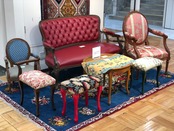 スツールは全て日本製です。木枠、塗装、張り込み仕上げ。