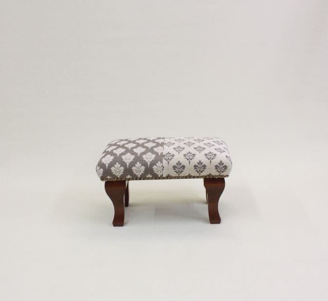 スツールは全て日本製。木枠、塗装、張り込みと日本の3人の職人の手によって作られています。 木部=脚は可愛い猫脚削り出し。 塗装=塗装色は木目を生かし、濃い茶色。 椅子張り=釘を一切見せず、細部にまで神経を使って綺麗に仕上げています。 布地=フランス製。 直輸入しているので他では手に入らない生地を使用しています。 フランスの生地は発色がよく、色鮮やかでお部屋に合わせやすいです。