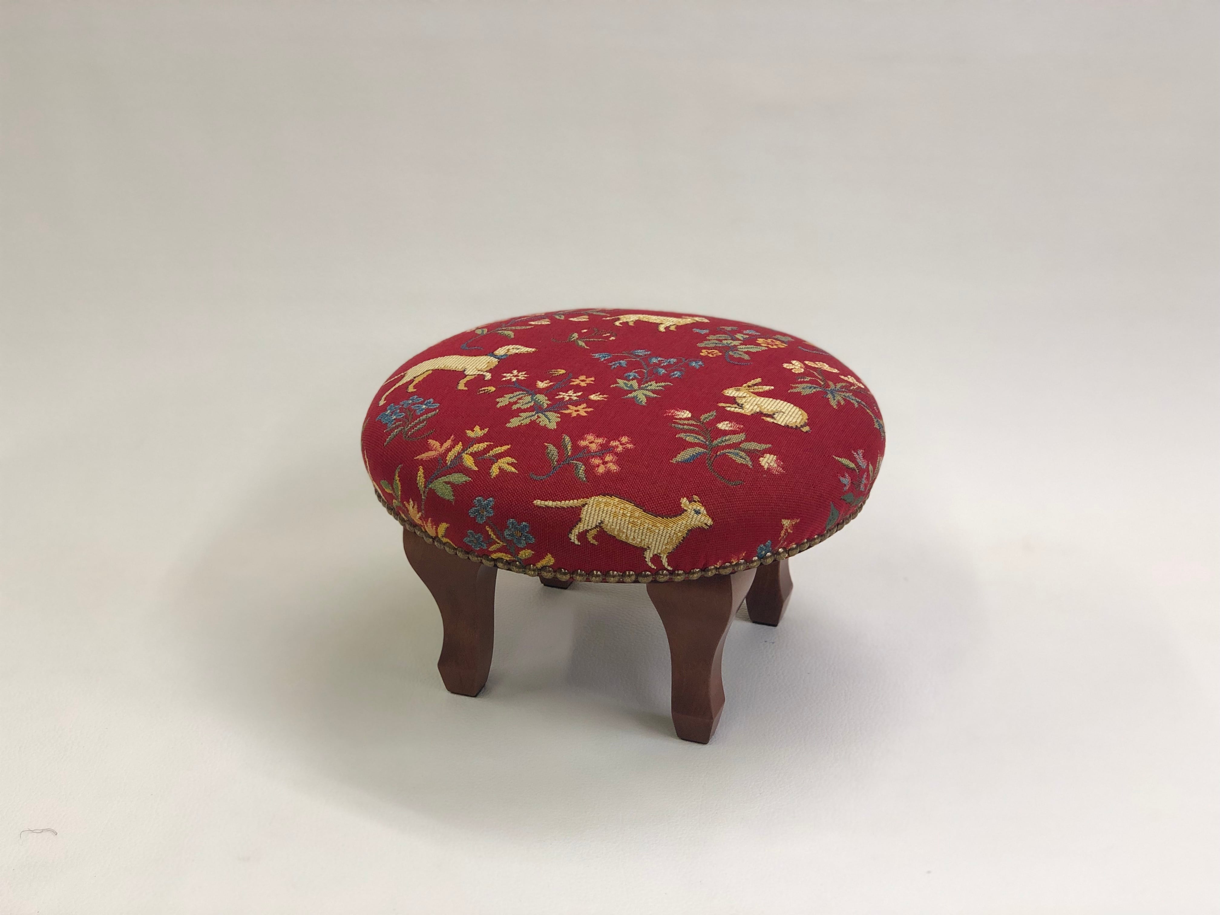 納期2ヶ月 ゴブラン輸入生地が可愛いサークルフットスツール 動物赤 中世博物館フランスゴブラン織り イスハウス ISUHOUSE