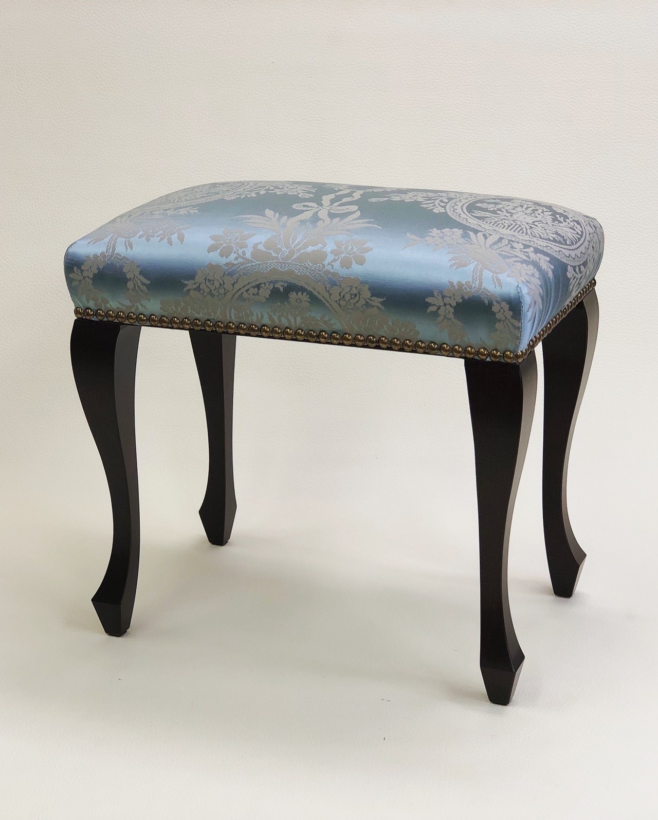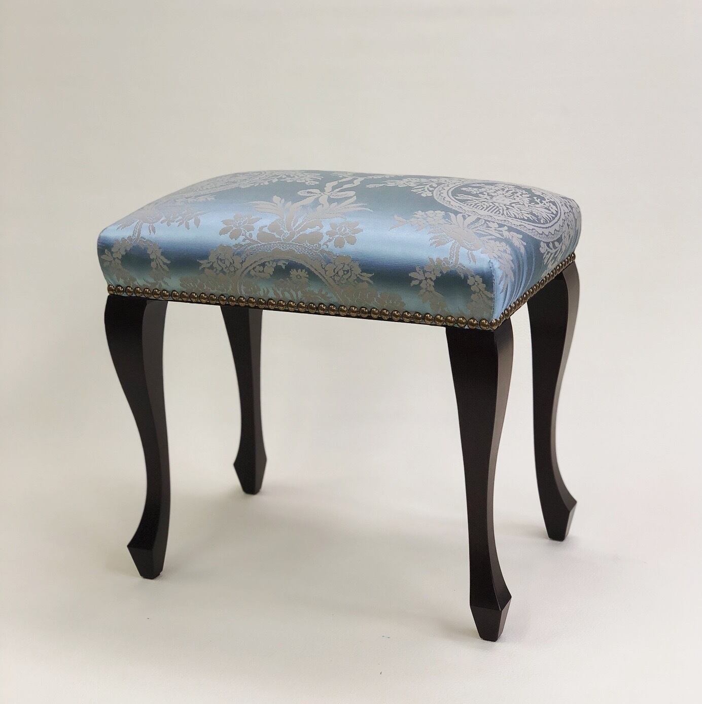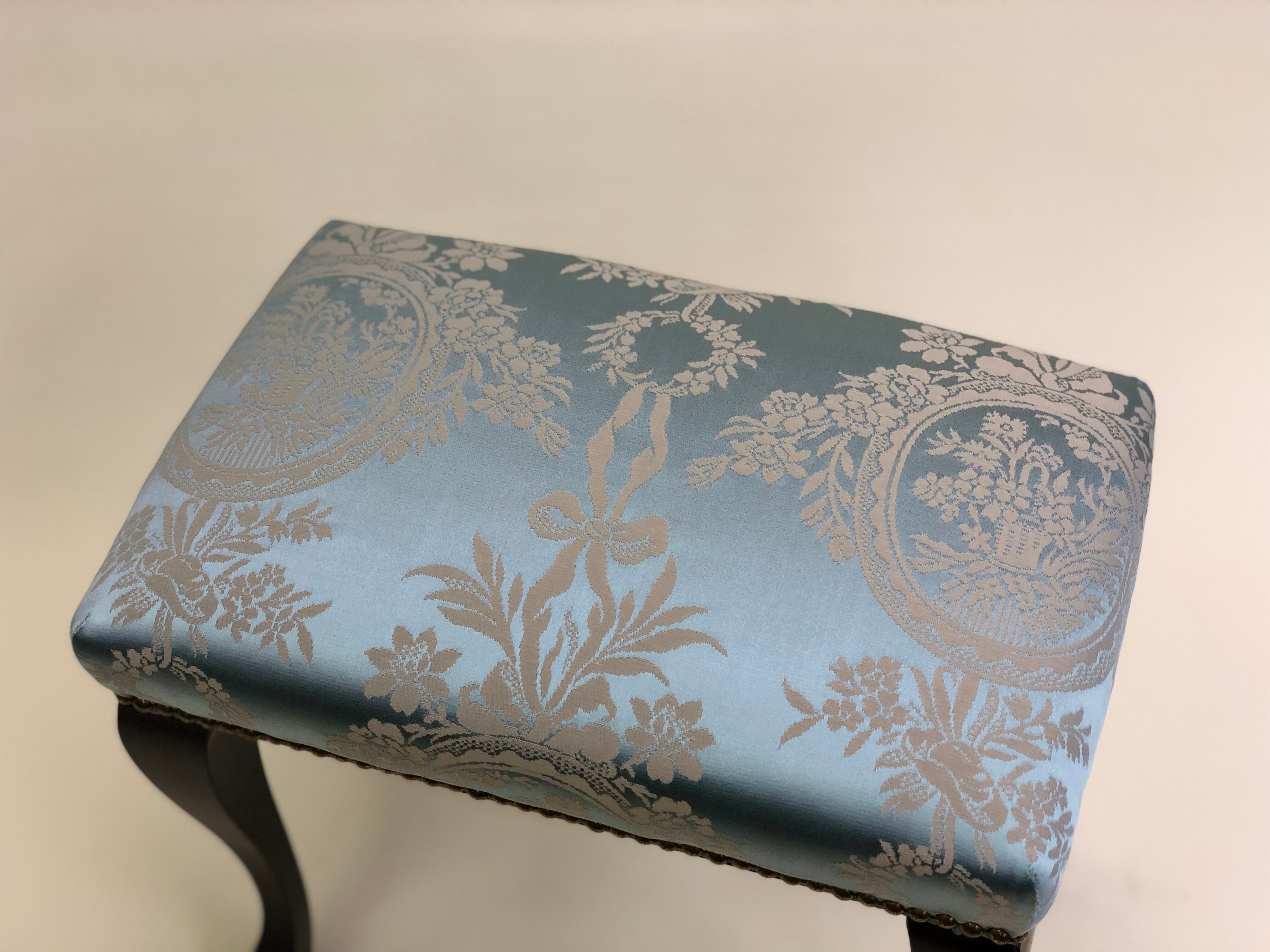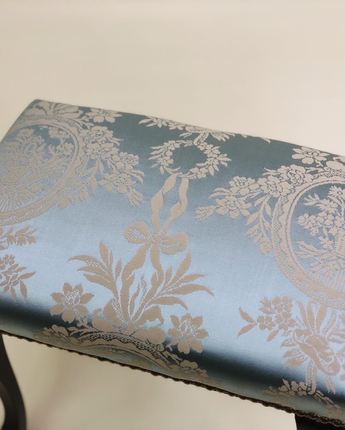 玄関スツール プティスツール ロータイプ フランスリヨンブルーシルク調ダマスク イスハウス ISUHOUSE