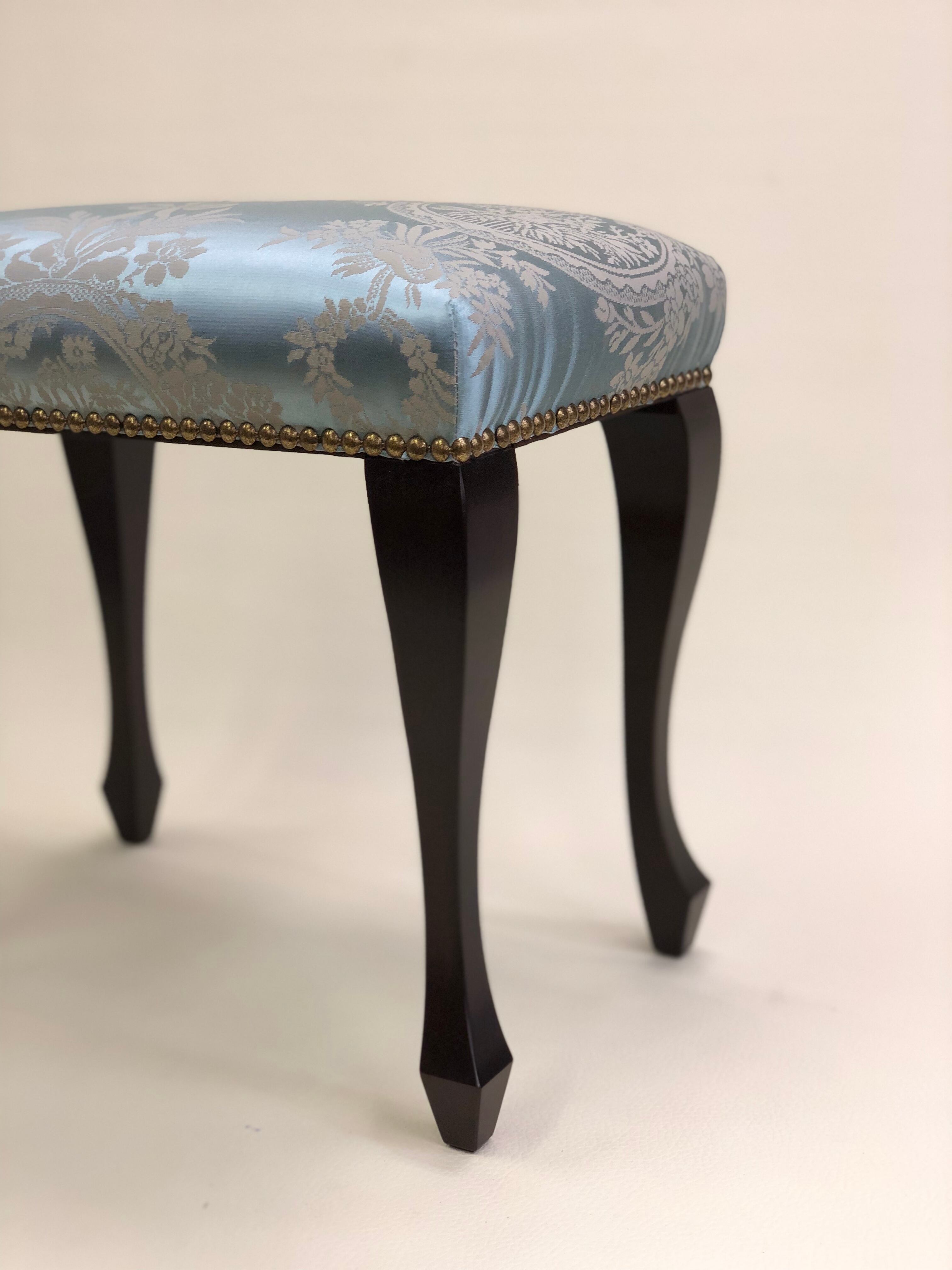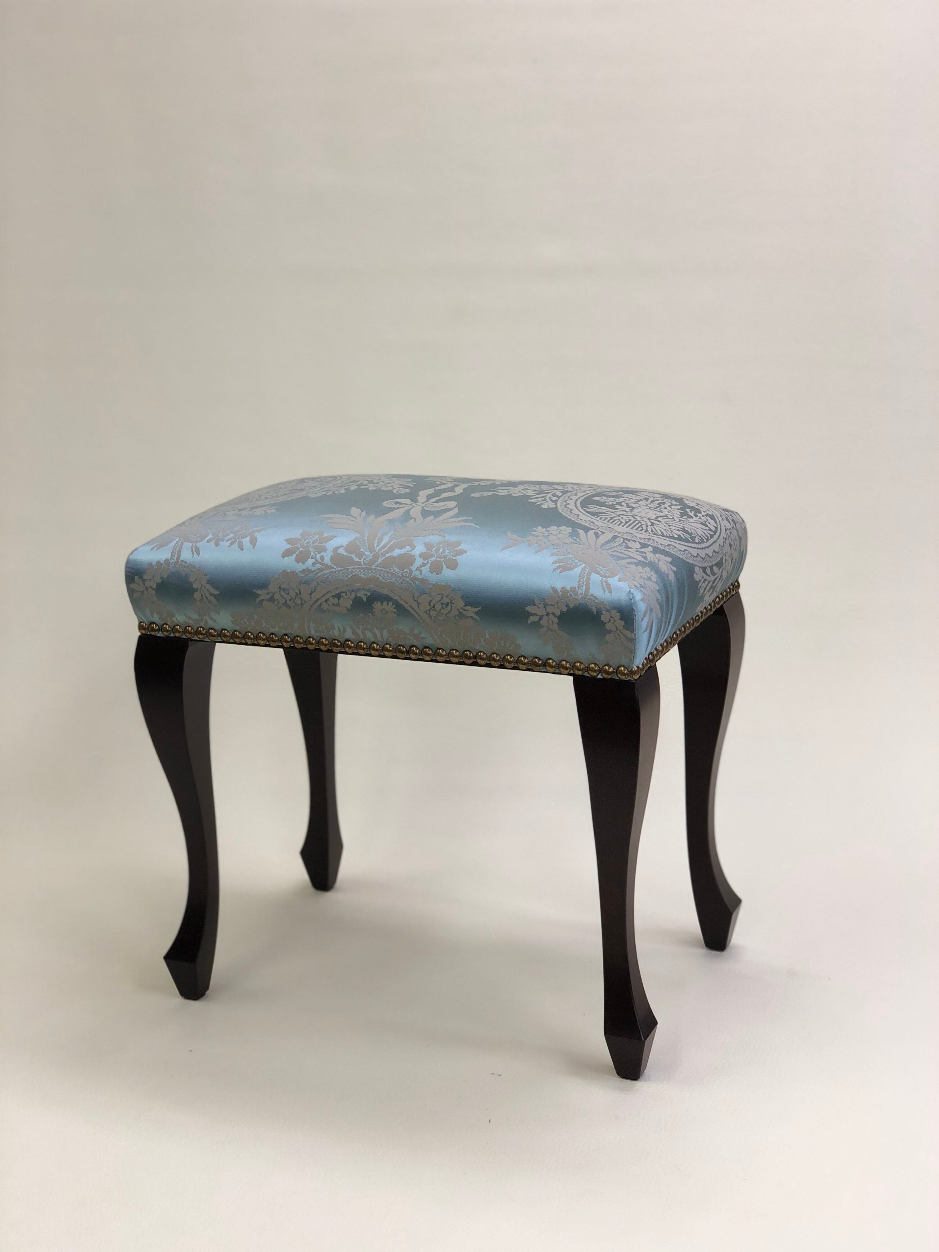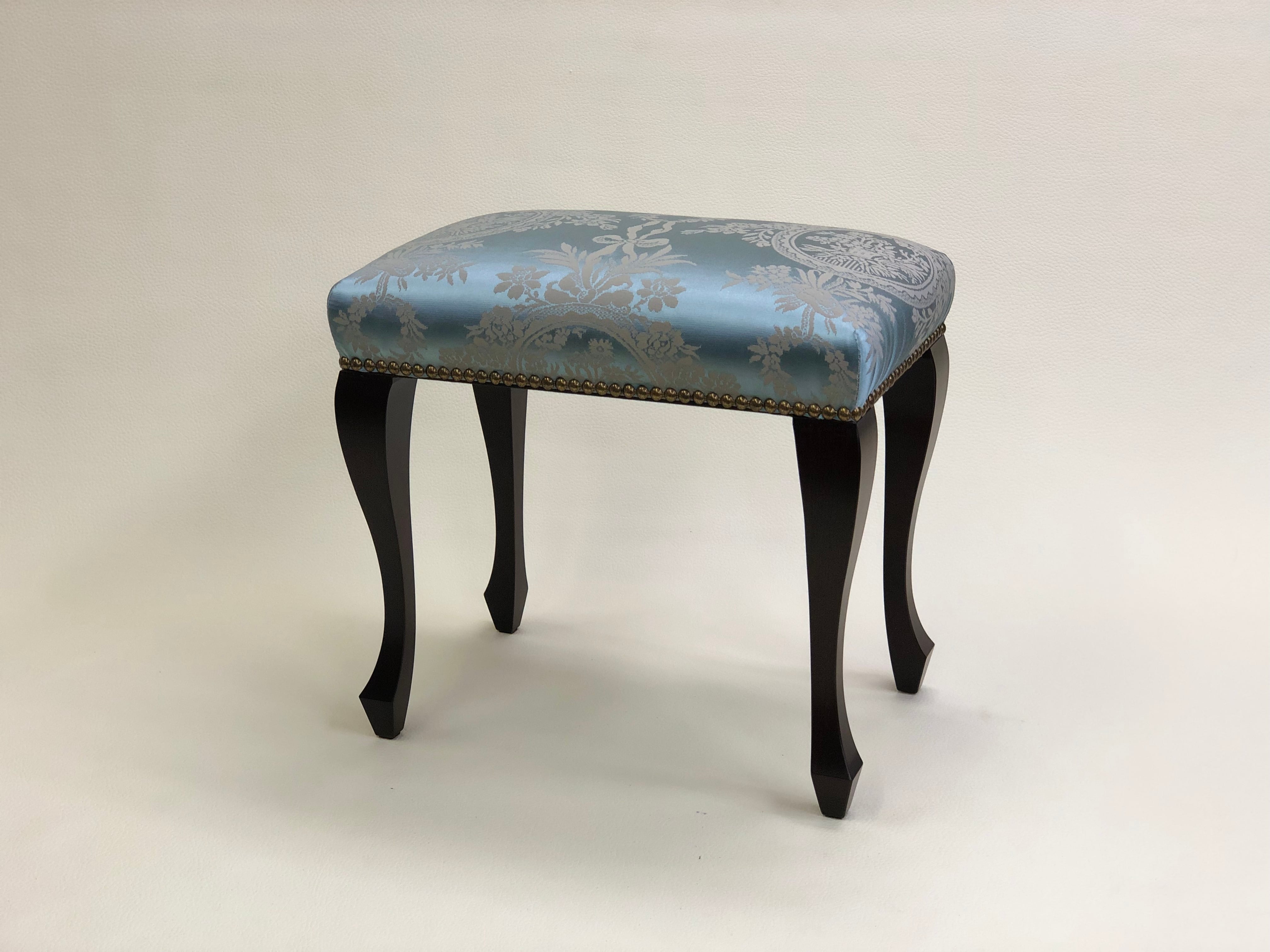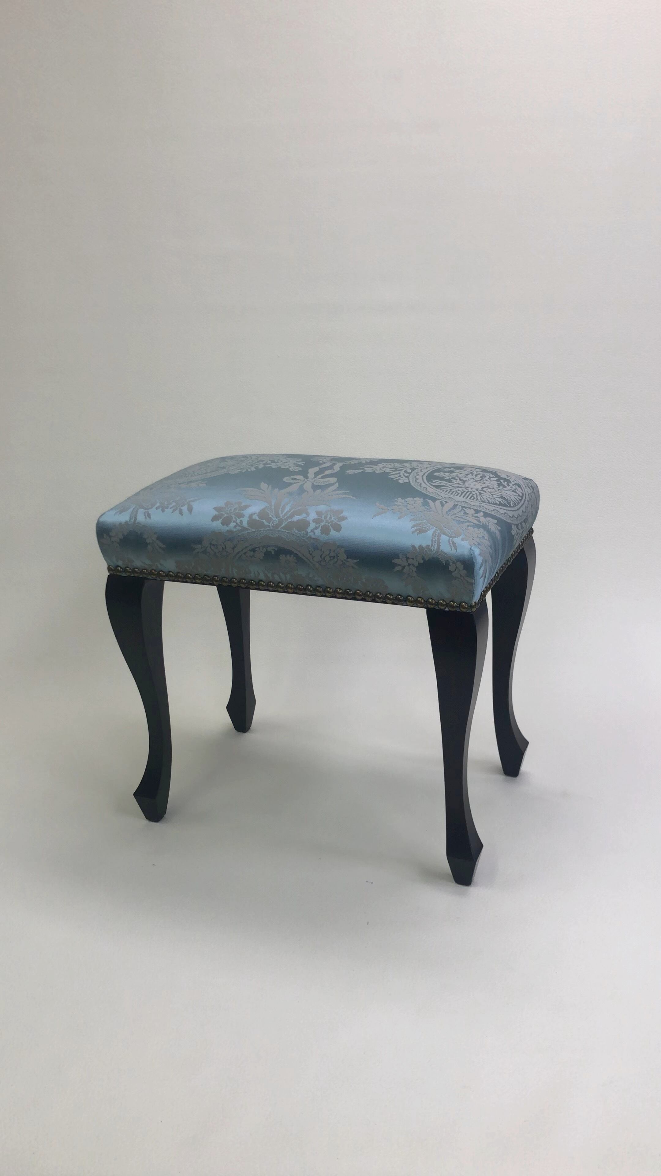 玄関スツール プティスツール ロータイプ フランスリヨンブルーシルク調ダマスク イスハウス ISUHOUSE